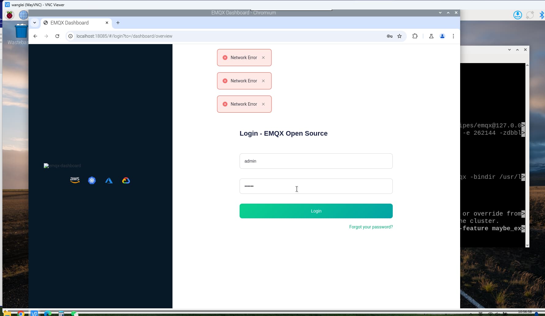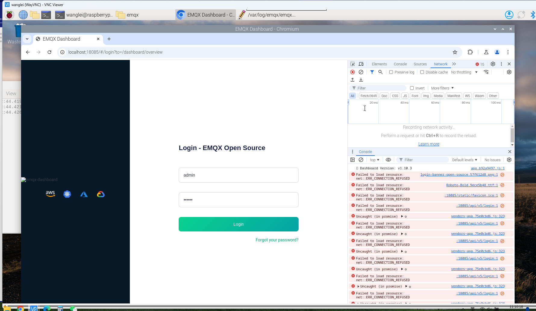 在树莓派中部署emqx,能够正在运行,但是登录显示网络错误