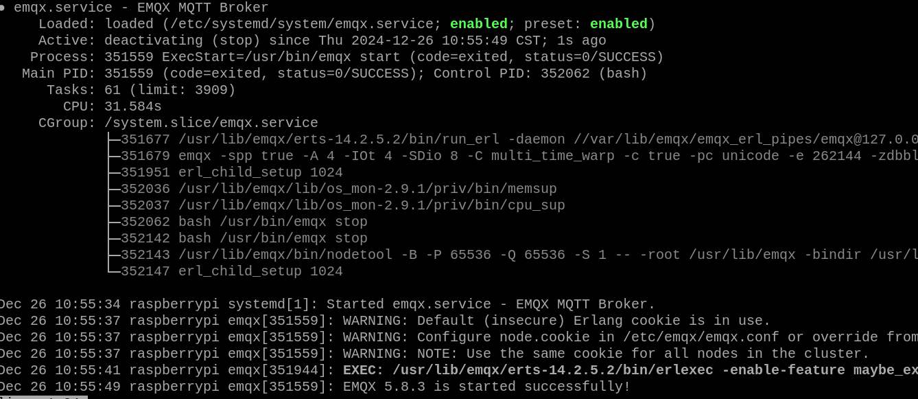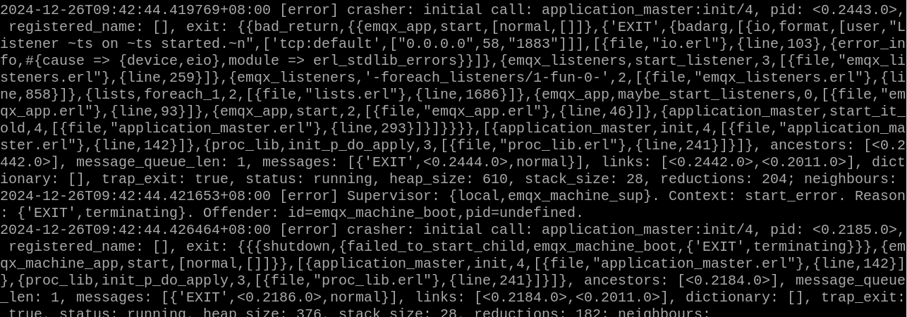 看看 /var/log/emqx/emqx.log.1 里面有什么报错