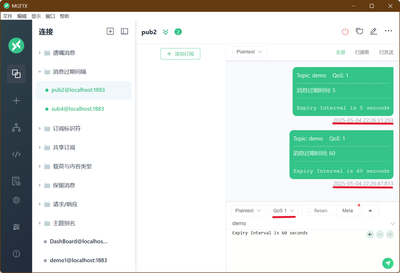 测试例程: 消息过期间隔介绍与示例 | MQTT 5.0 特性详解