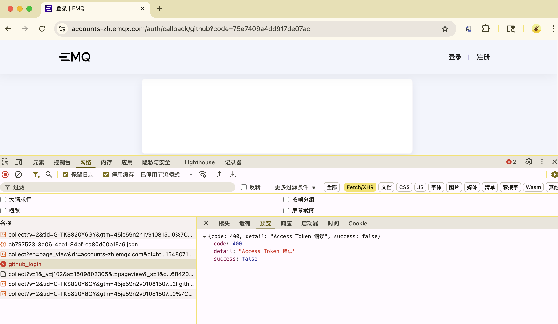 您好,从错误看起来是无法访问 github 导致,您可以发送邮件到 cloud-support@emqx.io 邮箱,要求解除第三方登录。