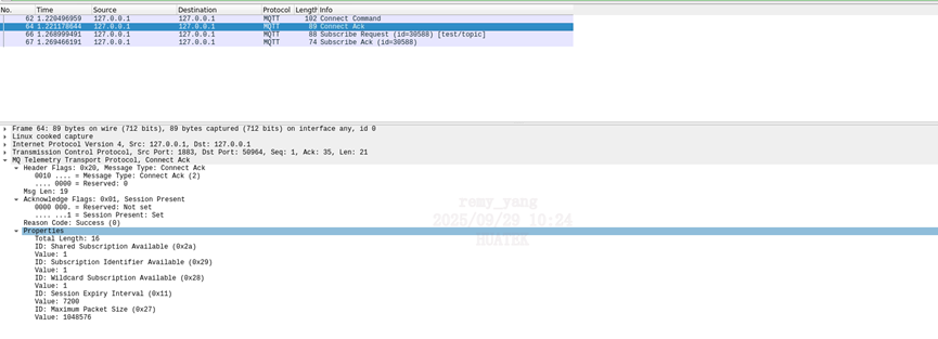 看抓包数据是客户端配置后,broker返回的connack报文会携带该字段,客户端在解析时候会报错断开连接