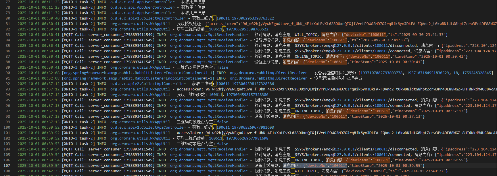 上图是服务端100611这个设备所有的状态变化日志,最后一次状态是上线,但是通过emqx控制台查看设备是离线状态,这种情况是mqtt配置有问题吗