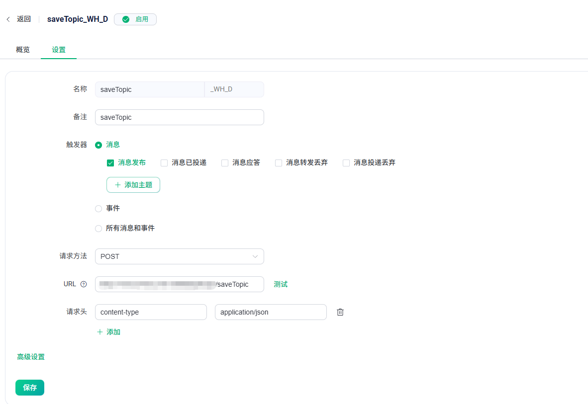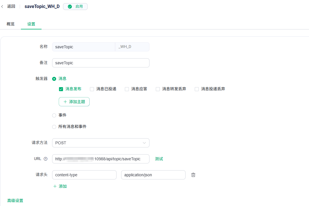 2025-10-31T14:16:35.085141+08:00 [debug] tag: SUBSCRIBE, clientid: 603010000019, msg: subscribe, peername: 36.19.65.183:39958, username: test, topic: /test/user/set, sub_id: <<“603010000019”>>, sub_opts: #{nl => 0,qos => 0,rap => 0,rh => 0,sub_props => #{}}