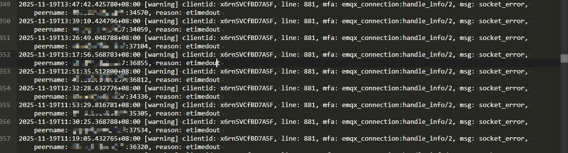 有一个设备总是出现连接到 EMQX 后,反复出现掉线重连,其他设备个别偶尔会,但是没这么严重