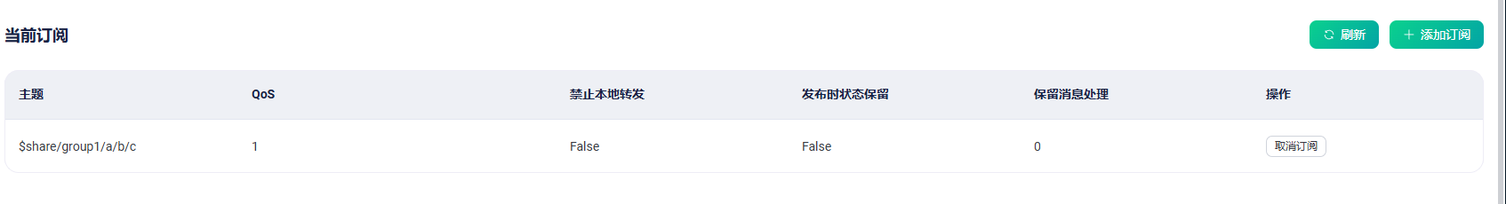 已确认EMQX开启了共享订阅的配置,ACL规则无问题,而且对应客户端在管理页面上出现对应的订阅主题