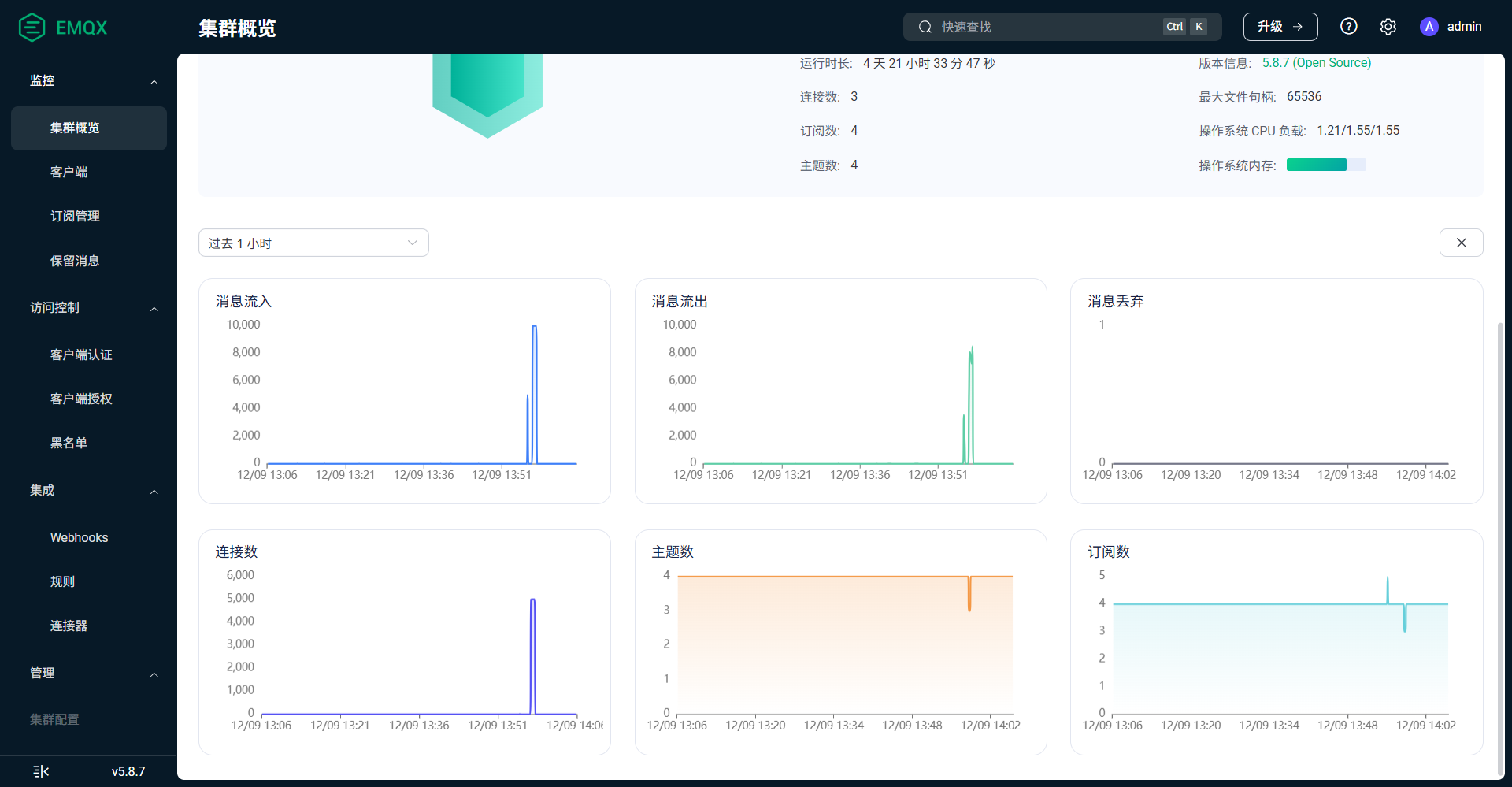 EMQX 5.8.7 消息流入、消息流出个数 对不上