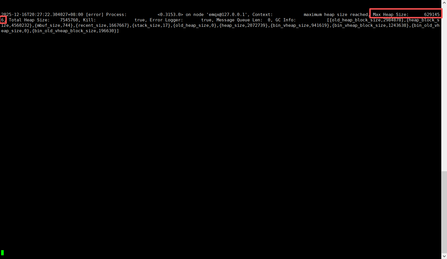 有报错。force_shutdown.max_heap_size,应该是这个配置限制了堆大小。