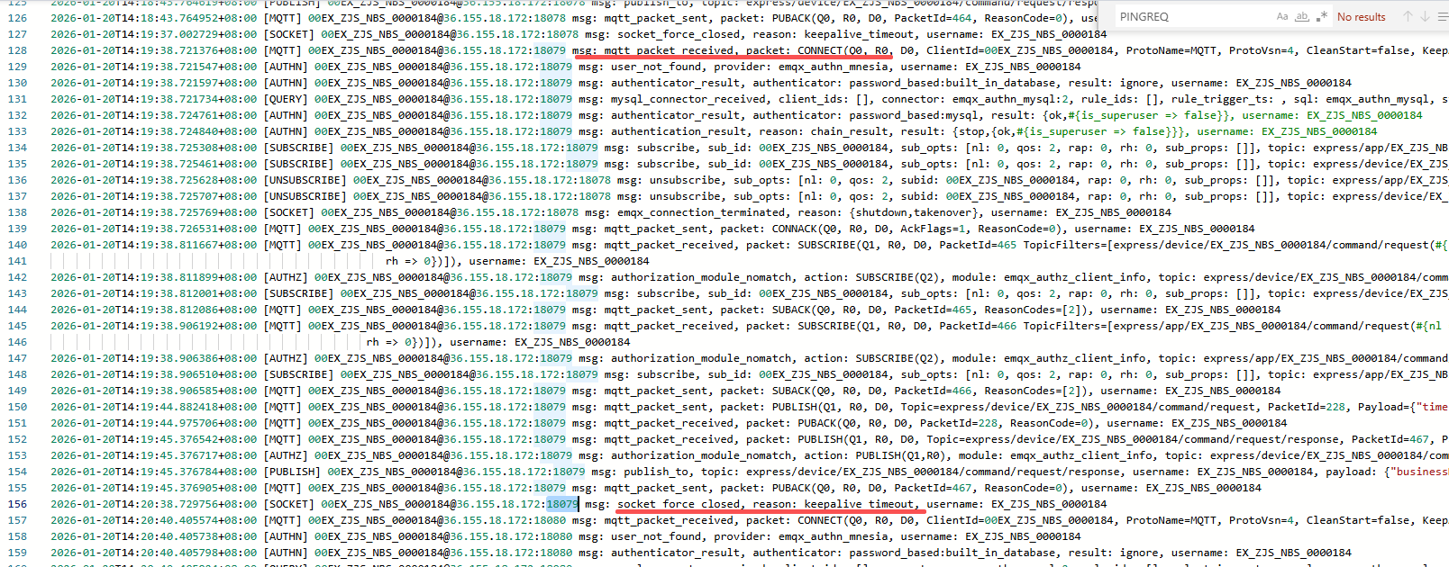 某些客户端出现频繁的上线下线,trace发现,是第一个连接创建后,没有发送心跳包,出现msg: socket_force_closed, reason: keepalive_timeout,第二个连接又创建,因为使用的是同一个clientID,会将第一个连接踢下去,这时第一个连接出现msg: emqx_connection_terminated, reason: {shutdown,takenover}。接着第三个连接,第四个连接,出现了循环。