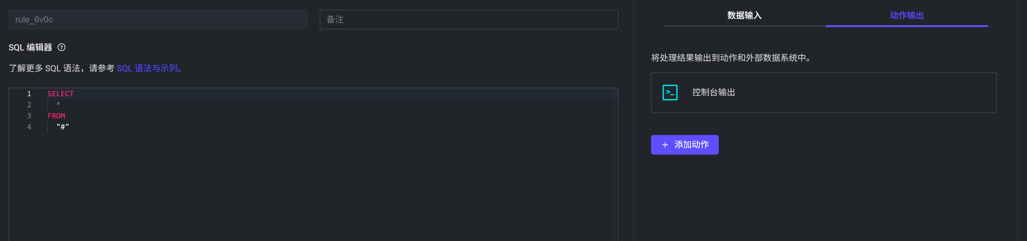 2026-02-26T10:18:24.548795+00:00 [debug] tag: ACTION, msg: action_success, mfa: emqx_rule_runtime:trace_action_bridge/5(975), pid: <0.84303.0>, result: ok, namespace: global, rule_id: <<"rule_gmzw">>, action_info: #{mod => emqx_rule_actions,func => console}