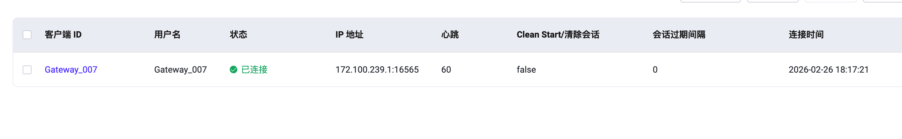username => <<"Gateway_007">>,peerhost => <<"172.100.239.1">>,
