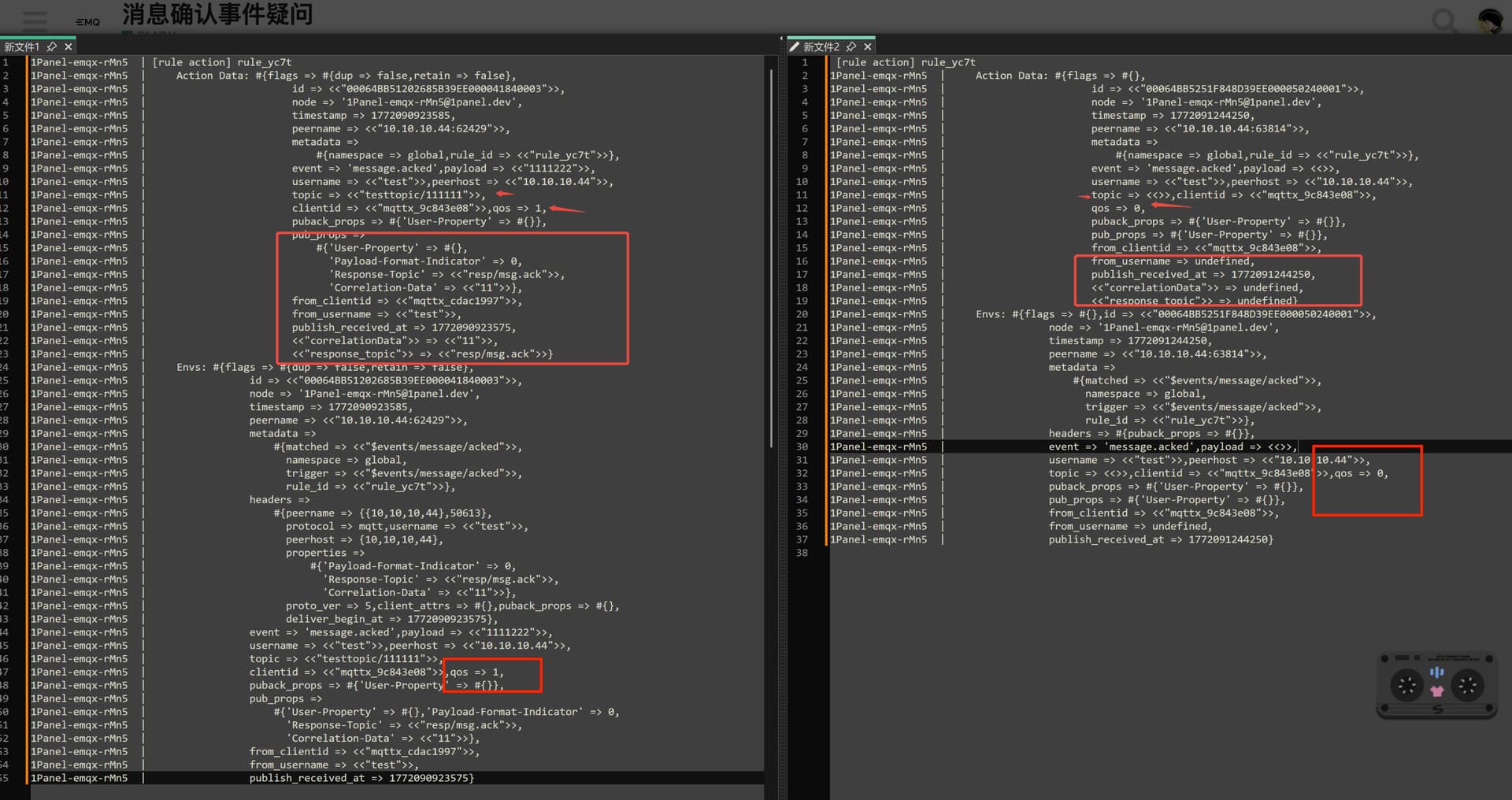 不好意思,规则 2 的报错,无论是QOS1,还是 0,都没有复现,能提供一下完整的 debug 日志么。