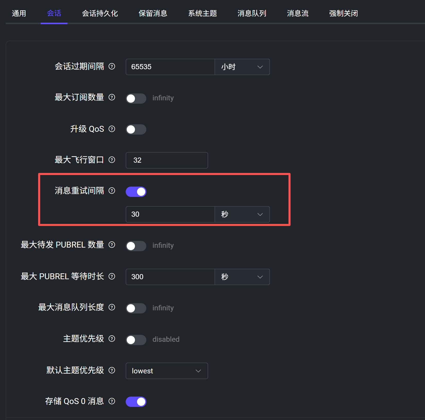 客户端处理消息失败 , emqx 存在客户端的飞行窗口中.