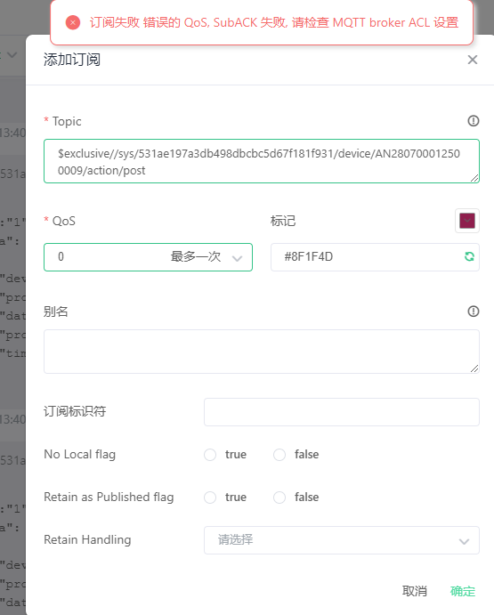 - 排他订阅失败,是否有错误提示,如果有需要贴一下